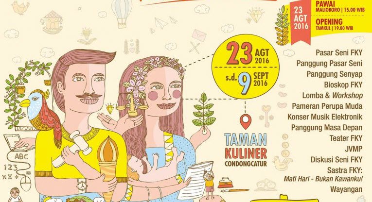 03 Sep 2016 s/d 04 Sep 2016, 16:00:00 s/d 22:00:00 Menuju Masa Depan Hari Ini Dulu, Tema FKY Ke-28 Indonesia Taman Kuliner Condongcatur.